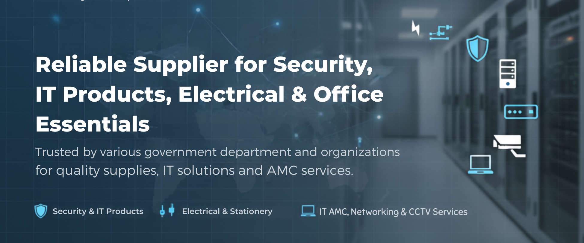Kamakhya Enterprises is a reliable supplier of Security Items, IT Products, Electrical Goods, Stationery and General Order Supplies for various government departments and organizations across India. We also specialize in IT software solutions, computer AMC, networking, fibre installation, switches, routers, and CCTV systems, providing complete technical support under one roof.